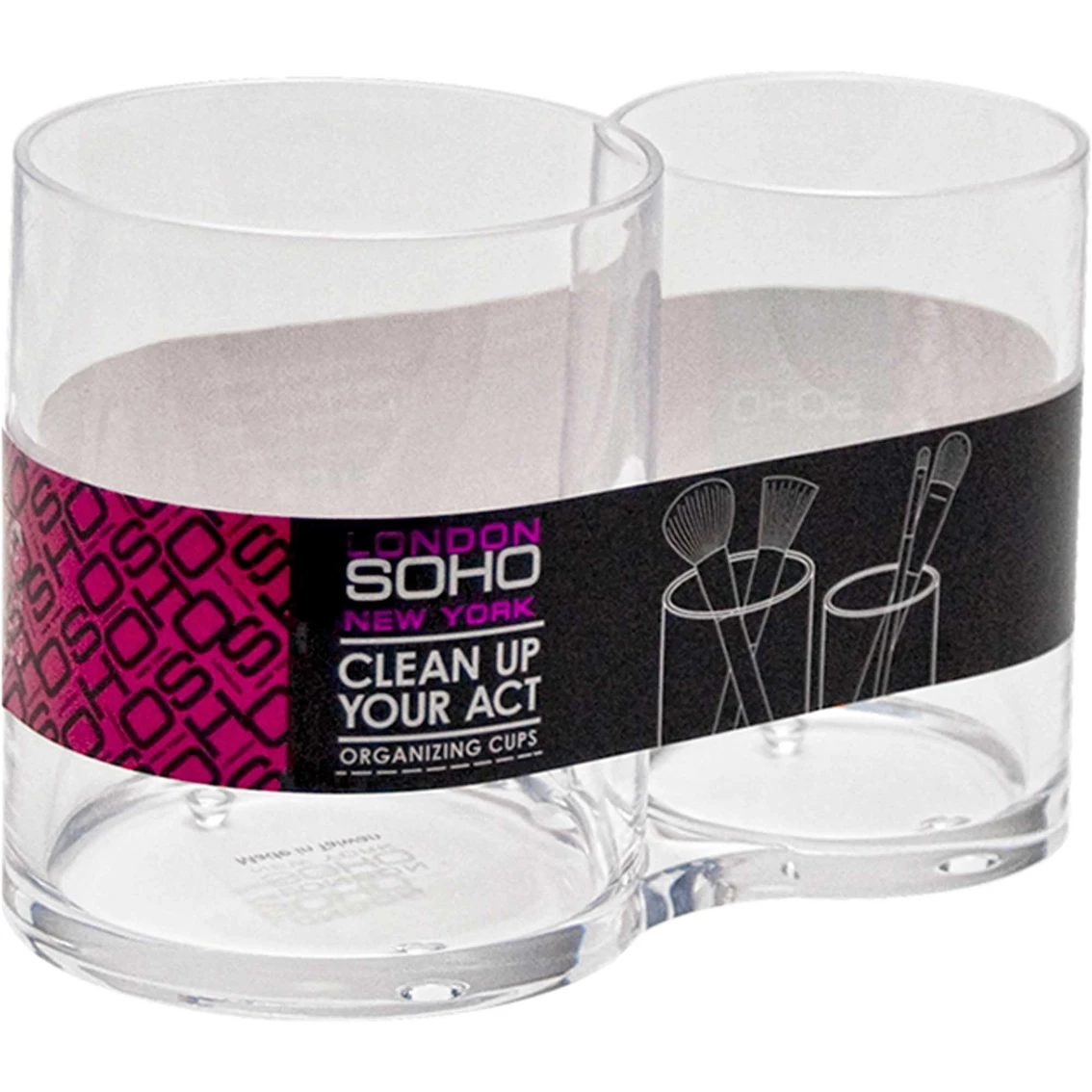Keep your makeup tools organized with this double brush cylinder holder from Allegro. It is designed with two open slot compartments for cosmetic brushes, lipsticks, eyeliners and more. This holder is made from acrylic. Model: 69C40419I.