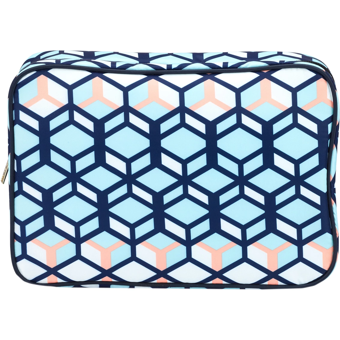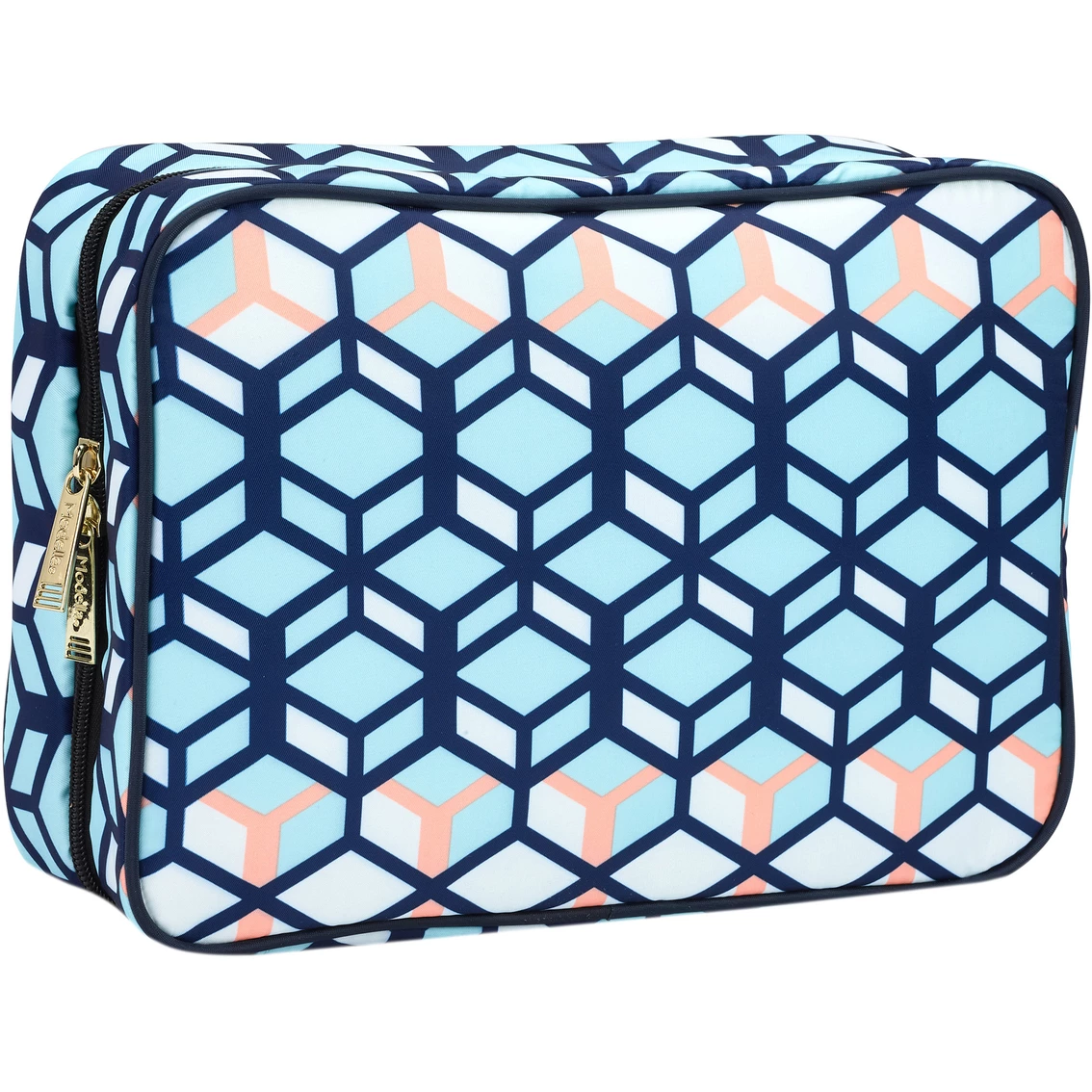 Keep your essentials in their proper places with the Modella 3D Geo Perforated Organizer from Allegro, decorated with a sleek 3D geometric design. It includes one main zippered compartment and two transparent inner zippered pockets. It also features a plastic coil zipper and goldtone hardware. This organizer is made of polyester and comes fully lined. Style: A014968.