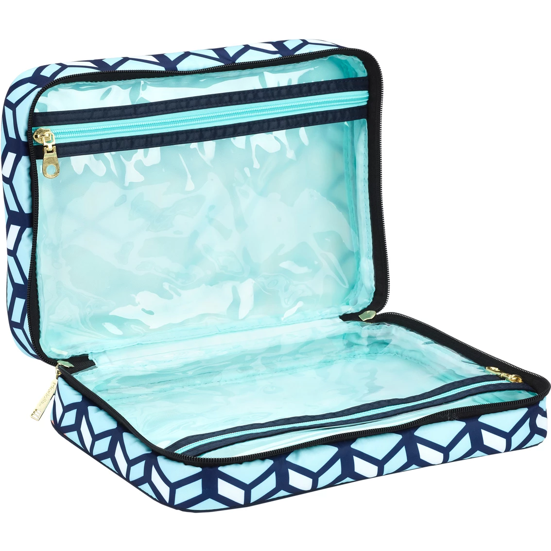 Includes one main zippered compartment and two transparent inner zippered pockets