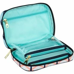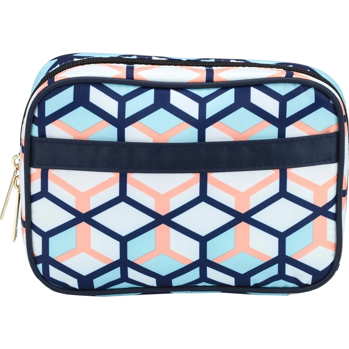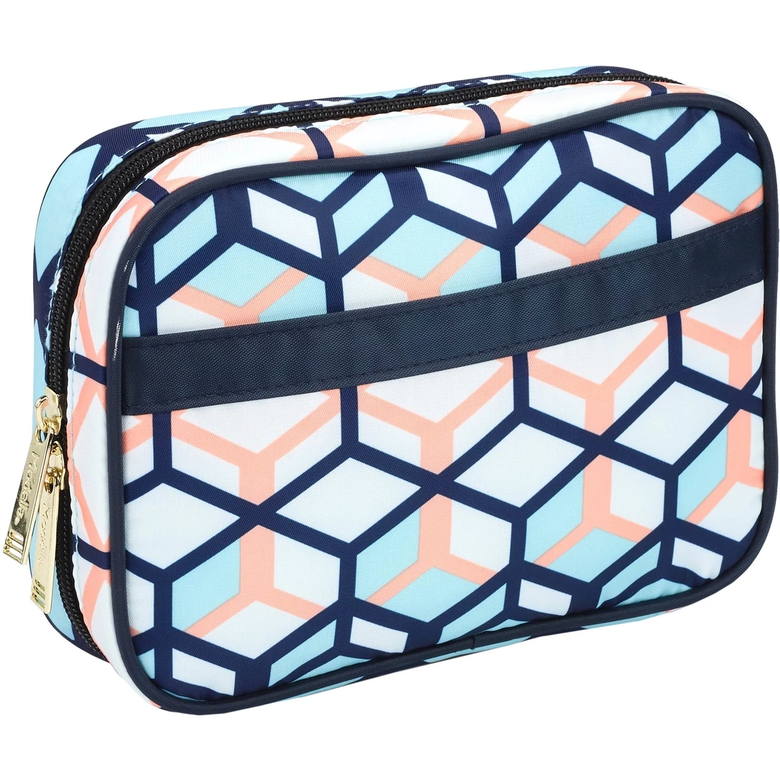 Decorated with a 3D geometric design, the Allegro Modella 3D Geo Perforated Organizer features one flat, zippered compartment, one zippered pocket and multiple brush slots, making it a perfect organizer. It also has two (2) clear pouches and a plastic coil zipper. Made of polyester, it is also fully lined and comes with goldtone hardware. Model: A014987.