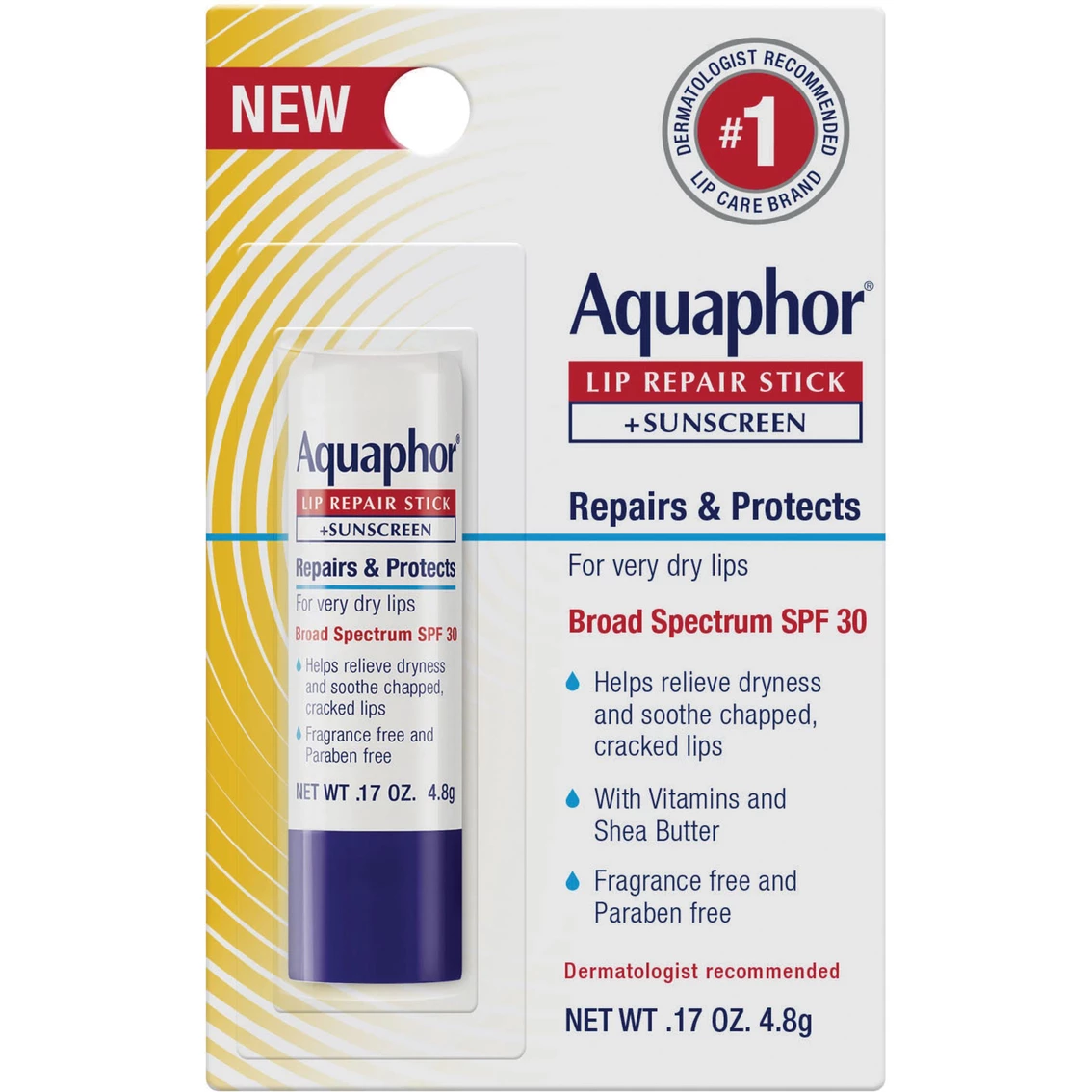 This Lip Repair and Protect Stick from Aquaphor repairs and protects. It immediately soothes very dry, chapped, cracked lips with Vitamins and Shea Butter. Size: 0.17 oz.