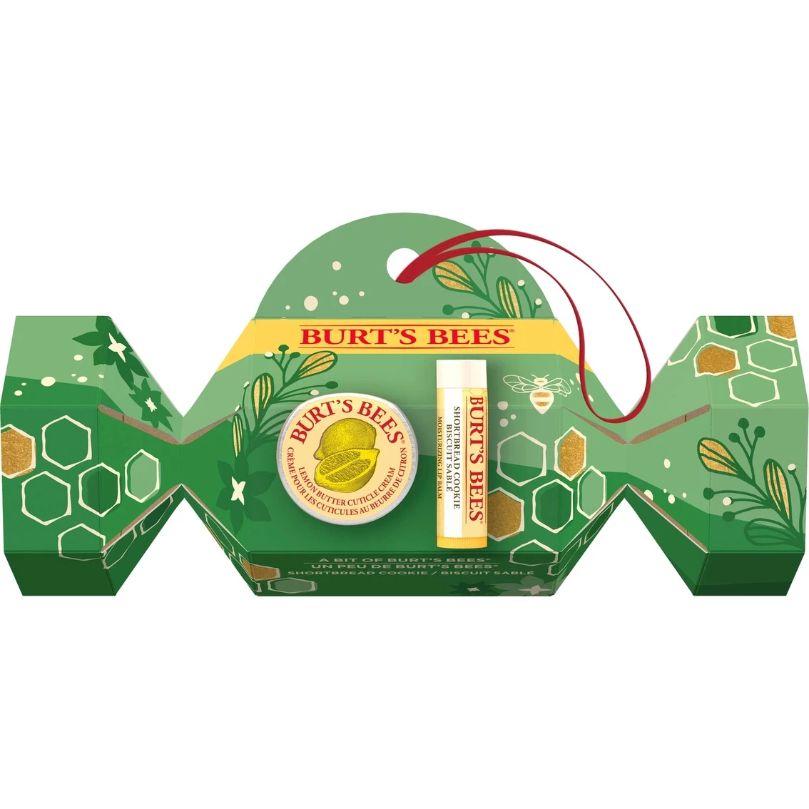 This Burt’s Bees Bit of Burt’s Gift Shortbread Cookie set is the perfect seasonal ornament gift. The assortment includes a Shortbread Cookie Moisturizing Lip B and a mini Lemon Butter Cuticle Cream. The packaging is 100% recycled paperboard and includes reusable hair tie as string.
