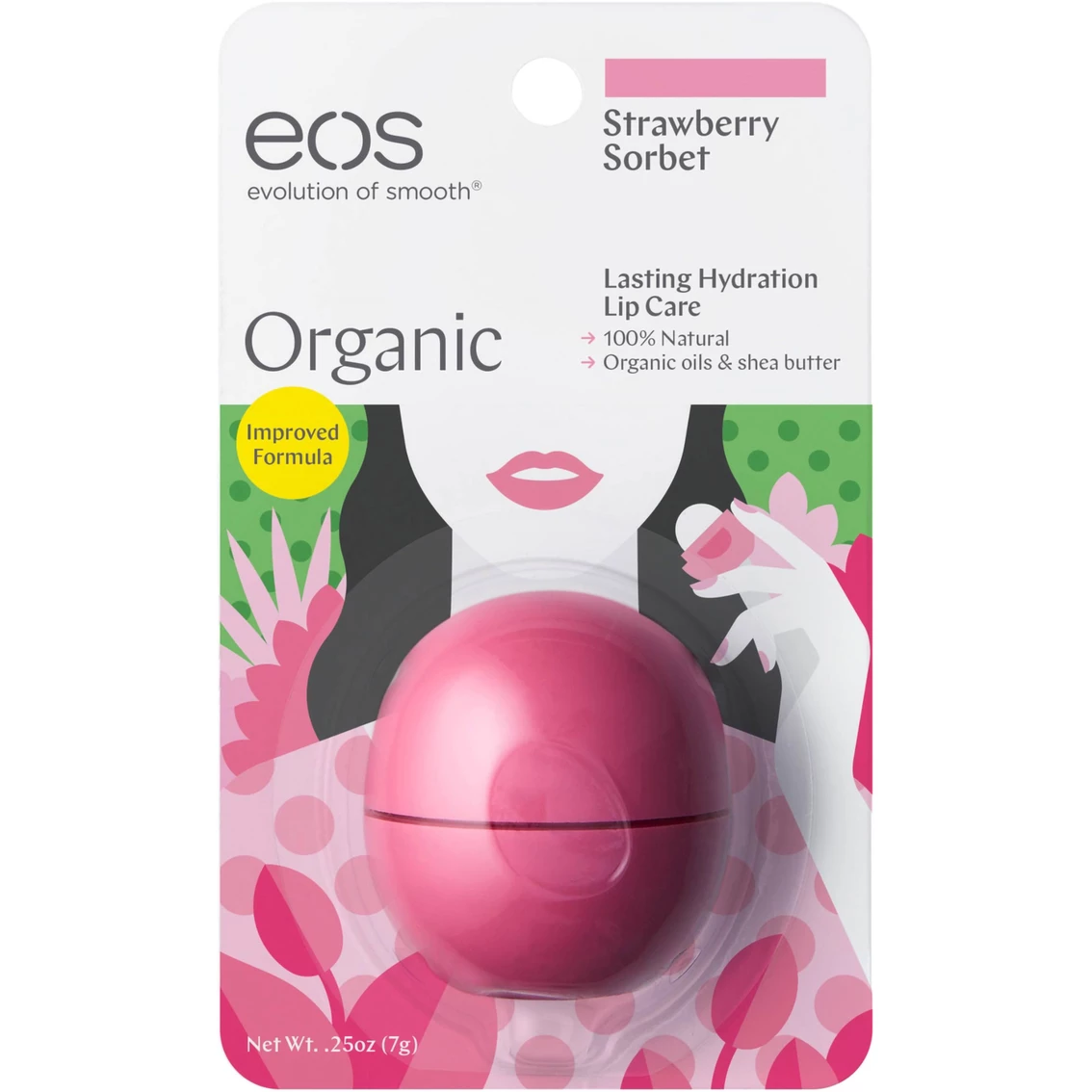 eos Strawberry Sorbet flavored lip balm is 95% organic, 100% natural, and paraben and petrolatum free. Packed with antioxidant-rich vitamin E, soothing shea butter and jojoba oil, eos keeps your lips moist, soft and sensationally smooth. Hypoallergenic. Style: 6876335.