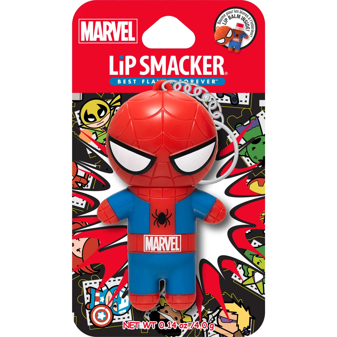 Get ready for some action-packed flavor with this Spider-Man character lip balm in Amazing Pomegranate! This cool superhero keychain doubles as a tasty Lip Smacker so you never have to be without your favorite lip balm.