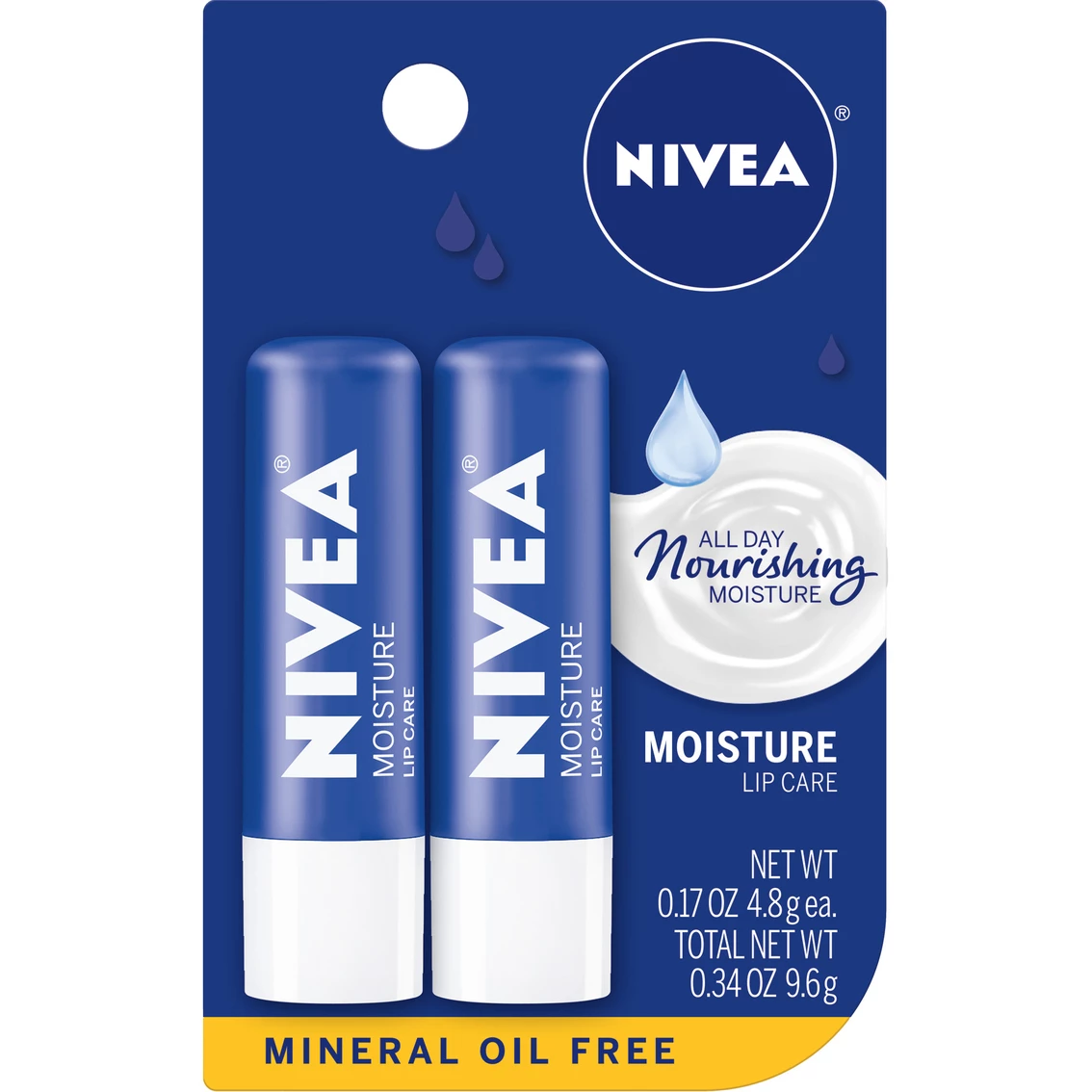 This lip balm 2-pack from Nivea is mineral oil-free and enriched with a variety of nourishing oils, including Shea Butter, Jojoba Oil and Avocado Oil. The unique formula helps lips feel instantly hydrated and protected from dryness, while also providing all-day nourishing moisture. Size: 0.34 oz.