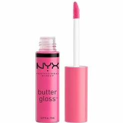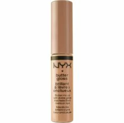 Buttery soft and silky smooth, this scrumptious Butter Lip Gloss from NYX tastes as sweet as a sugar cookie and makes your lips look downright luscious. Swipe it on alone or over your favorite lipstick for creamy, sheer- to medium-coverage that melts onto your lips and is never sticky. Model: BLG.
